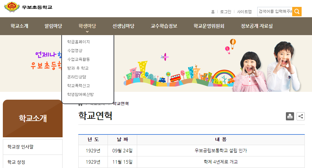 “학교연혁.” 『우보초등학교』, http://school.gyo6.net/ubo/0104/history, 2022년 5월 20일 검색.