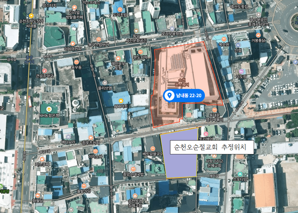 그즈음에 한 꿈에 천사가 나타나 박귀임에게 “순천오순절교회”라는 교회명칭을 계시해 주었다. 1949년 3월경에는 순천경찰서 남쪽(변종호에 의하면 북쪽) 뒷담 곁에 있는 남내동의 이층집(변종호에 의하면 적산가옥)으로 예배처소를 옮겼다. 순천경찰서의 위치에 대해 두 가지 언급이 있다. 하나는 대한예수교장로회순천노회의 언급으로서 순천경찰서가 당시에 “중앙동 22-20번지”에 있었다고 한다. 그런데 중앙동 22에는 자그마한 필지들만 있어서 경찰서와 같은 공공기관이 있었을 법하지 않다. 다른 언급은 K기독신문에 의한 것이다. K기독신문에 따르면, 당시 순천경찰서는 “남내동 22-20번지”이다. 현재 남내동 22-24번지(북쪽) 외 22-20(남쪽)을 포함하는 8필지(전에 시티관광호텔이 있던 자리)에는 판매시설인 순천 원스퀘어가 자리 잡고 있다. 그 건물의 대지면적은 1,312.25평으로서 제법 크다. 그 정도 크기이면, 당시 그곳에 순천경찰서가 있었을 법하다. 순천오순절교회는 순천경찰서 남쪽 뒤뜰 담과 붙어있었다. 현재의 원스퀘어에서 황금2길 건너 남쪽 부분이다.