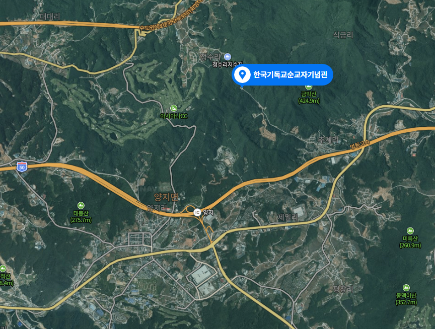 용인에 있는 한국교회 순교자기념관 입구에 세워짐
