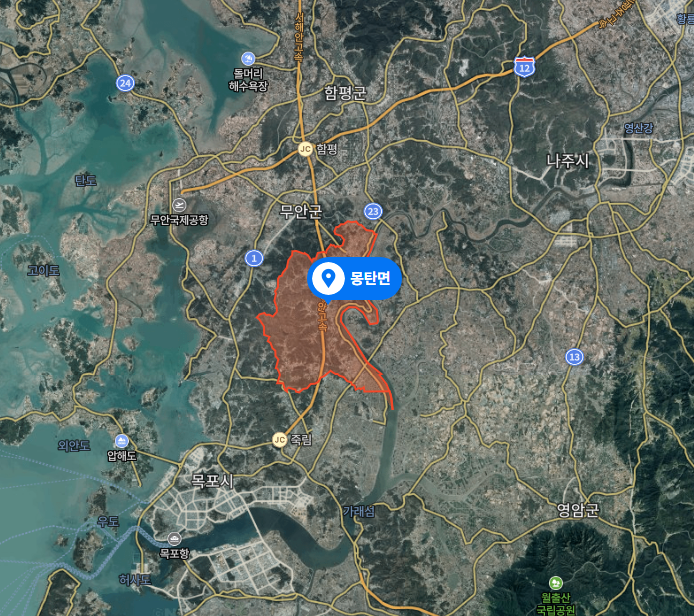 무안군 몽탄면에는 한 전설이 있다. 고려 태조 왕건이 후백제를 공략하다가 지금의 나주 동강면으로 가려 했다. 그러나 영산강이 막혀 건너지 못하고 있었다. 그때 “꿈”(夢, 몽)에 한 백발노인이 나타나 눈앞의 호수는 강이 아니라 “여울”(灘, 탄)이니 빨리 건너라고 말했다. 그래서 왕건은 말을 타고 현재의 몽탄나루를 건너가 견훤군과 싸워 대승을 거두었다고 한다. 그래서 그 지역을 “몽탄”(夢灘)이라 부르게 되었다는 것이다.