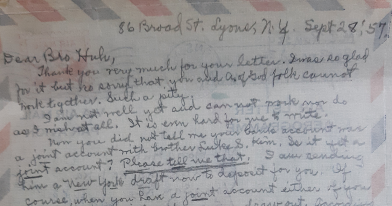 Thank you very much for your letter. I was so glad for it but so sorry that you and As. of God lk cannot work together. Such a pity.