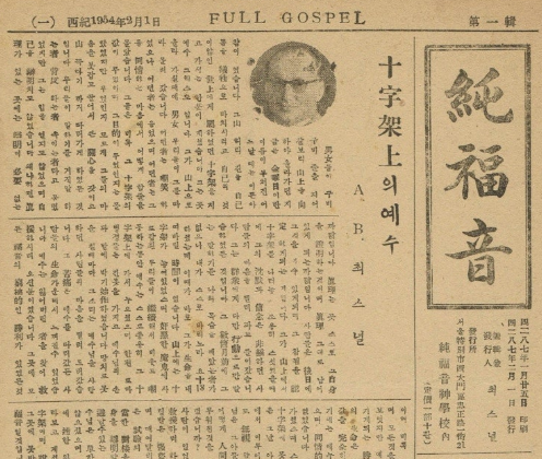 기독교대한 하나님의 성회는 1954년 2월 1일 『純福音』(Full Gospel)이라는 교단지를 발간하기 시작했다. 그 교단지의 “편집겸 발행인”은 체스넛이었다. 그 창간호 첫 면에 그의 설교 한편이 실렸다. 그 설교문의 저자는 “A. B. 최스널”이었다. 즉, “최스널”은 그의 한국명이었던 것이다. 그 설교문의 제목은 “十字架上의 예수”였다. 고난주간도 아닌 2월에 그것도 교단지의 창간호 첫머리에 그리스도의 고난에 대한 설교문을 실은 것이다. 그는 고난 설교가 한국에 제일 필요한 것이라고 판단했던 것이다. 그는 예수께서 십자가에 못 박히는 고난을 받으시려고 세상에 오셨는데, 그것은 인류의 죄의 문제를 해결하기 위해서였고, 그 고난은 결국 승리의 길이었다고 설파했다. 한국인들은 전쟁의 고난 속에서 평화와 안정을 가져다 줄 원자탄과 같은 세상의 힘에 의지하려 하겠지만, 그것은 결코 의지할 것이 못되고 오직 십자가 위에서 죽으셨으나 부활의 능력으로 다시 살아나신 승리의 예수 그리스도만이 한국인들이 참으로 의지할 수 있는 분이라고 외쳤다.