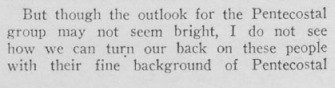 한국 오순절의 앞날은 어둡습니다. 그러나 저는 오순절적으로 잘 교육을 받은 이 사람들을 등지지 말아야 한다고 생각합니다. 그래도 제법 많은 사람들이 우리를 부르고 있습니다. 전쟁으로 찢긴 나라의 절망에서 벗어나려는 손이 우리의 양심의 문을 두드리고 있습니다. 즉시 이런 한국에 들어가는 것 이외에 어떤 다른 것을 할 수 있단 말입니까?