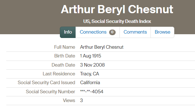 대공황 때인 1932년에 지역 고등학교를 졸업한 체스넛은 한 농장에서 잠시 일한 후 웨이어하우저 목재 회사(Weyerhauser Timber Company)에서 널판 가공사로 몇 년간 근무했다. 그런데 1936년 가을에 교통사고로 머리가 골절되고 뇌진탕과 기억상실을 겪었다.