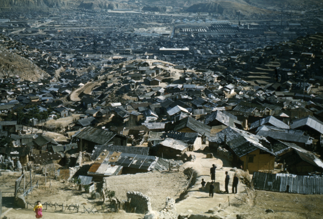 부산 공항에 도착한 것은 아주 놀라운 경험이었다. 미공군 전투기들과 폭격기들이 어디든 앉아 있었다. 방어 무기들이 그야말로 그곳을 가득 메우고 있었다. 그것을 생각해 본 적이 없었지만, 더 많으리라 예상해야만 했었다. 아는 사람도, 마중 나온 사람도 없었다. 그래서 택시를 잡아타고 [오스굳에게] 받은 주소지로 갔다. 그렇게 쉬웠다. 일본에서 극심한 가난을 보았었기 때문에, 한국에서 맞닥뜨린 전시 상황들은 내게 충격적이지는 않았다. 대규모의 피난민이 문제였고, 쓰레기나 오물도 무시 못 할 것이었다.