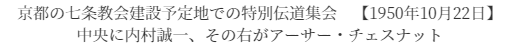 체스넛은 차를 몰고 1949년 7월부터 8월까지 40일 동안 동해 길의 자동차 여행을 하면서 전도했고, 8월에는 2주 동안 교토, 오사카에서 전도했다. 10월 말에 이토 켄에이(伊藤顯榮) 신학생을 통역으로 삼고 하마마츠시(浜松市)의 공회당에서 10일간의 하마마츠 대전도회를 개최하자 도쿄에서 마리 주루겐센(Mari Jurgensen), 쿄토(京都)에서 우치무라 세이이치(内村誠一)가 응원하러 달려왔다. 또 1950년 5월에는 통역으로서 이토 켄에이 신학생을 수반해 고베(神戸)의 어영(御影)에서 특별 전도 집회를 실시해, 여름에는 교토의 시치조 교회(七条教会)의 회당 건설 예정지에서 특별 천막 집회를 가져 우치무라 세이이치의 사역을 지원했다. 교토의 우치무라 세이치의 사역을 플로렌스 바이어스와 루스 플로이드도 지원했는데, 시치조 교회의 회당 건축을 위해 미국 뉴저지의 세일렘의 세일렘 오순절 교회에서 1000달러를 기부했다.
