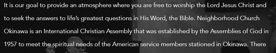 체스넛은 화물 우선으로 건조된 Old Colony Mariner를 타고 1957년 9월경 오키나와(沖縄県)에 도착했다. 럼시는 1957년 10월 1일에 허홍에게 보낸 편지에서 체스넛의 오키나와 행을 언급했다. 그녀는 “체스넛 형제는 오키나와로 갔습니다. 그의 미국 주소는 캘리포니아, 몬로비아, 사서함 345입니다”라고 썼다. 체스넛은 “오키나와 스타일 집”(a Okinawan-style house)을 주거용으로 빌렸다. 그리고 그 집에서 주일학교를 시작했다. 주일학교 학생들이 그 집이 감당할 수 없게 늘어나자 한 블록 떨어진 건물을 빌렸다. 그 건물이 교회 건물이 되었다. 그 교회의 교인들은 일본 원주민들과 미군인들로 구성되었다. 주일 아침에는 원주민들이 예배를 드렸고, 오후에는 미군들이 그리고 저녁에는 다시 원주민들이 예배를 드렸다. 그리고 주중에는 하루는 원주민들, 다른 하루는 미군들을 목회했다. 그 교회의 명칭은 The Neighborhood Full Gospel Church였다. 스즈키에 의하면, 체스넛 부부는 1979년까지 22년간 거주하며 현재의 네이버후드 교회를 개척하고 오키나와 크리스천 스쿨 등을 지원했다. 671 Yagibaru, Kitanakagusuku, Nakagami District, Okinawa에 위치하고 있는 네이버후드 처치 오키나와(Neighborhood Church Okinawa)는 교회에 대해 “국제적 그리스도인 성회로서 오키나와에 주둔하고 있던 미군과 군속들의 영적 필요에 부응하기 위해 1957년 하나님의성회에 의해 설립되었다”고 기록하고 있다. Facebook의 “I went to Neighborhood Assembly of God church in Okinawa”라는 계정에 미스티 스캇(Misty Scott)이라는 사람이 2015년 8월 17일에 게시한 글에 의하면, 네이버후드 어셈들리지 오브 갓의 설립자가 체스넛이었다. 그녀는 그 교회가 1950년대에서 1980년대 초까지 어떻게 시작되었고 성장했는지 알고 싶은 사람은 그 사역의 설립자인 아더 체스넛(the founder, Art Chestnut)의 전기를 읽어볼 것을 권하며 그 전기의 표지 사진을 제시했다.
