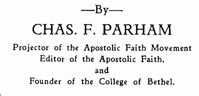 그 발췌는 조직화된 종교에 대한 파함의 반감을 의심하지 않게 한다. 그렇지만 그 발췌는 또한 종교적 권위의 전적인 결여에 대한 그의 염려도 보여주였다. 그는 참된 일치는 오직 모든 그리스도인들의 성화와 성령침례라는 연속적인 경험들을 통해 도달될 수 있다고 결론지었다. 이것은 그 운동의 미래에 대한 지나치게 낙관적인 표명이었지만, 파함은 자기의 두드러짐이 자신의 보다 소박한 주장을 거스린다는 것을 깨닫지 못한 것 같다.