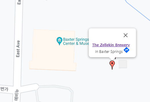 37° 1.672′ N, 94° 43.97′ W에 있던 그 백스터 스프링스 양조장은 1870년에 독일 출신 이민자 에드워드 젤레킨(Edward Zellekin)에 의해 건축되었다. 그는 젓소 타운 붐이 일어나면 주류에 대한 요구가 있을 것을 예상했었다. 그 건물은 벽돌과 노란 사암으로 구성되었다. 젓소 붐이 사그라든 후, 젤레킨은 그 건물을 버리고 광산개발을 위해 조플린으로 이사했었다. 몇 년후 이 건물은 사도신앙 운동의 본부가 되었다. 그 건물은 1960년대 초에, 아마도 그 이전에 주류 제조장소였었기 때문에, 파괴되었다.