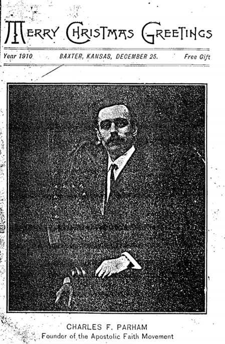 그래서 파함이 1909년에 그곳으로 이전했던 백스터 스프링스는 작지만 붐비던 곳이었다. 그는 그곳에서 그야말로 그 나라 전역을 다니는 전도여행들을 계획하고 재개했다. 그런데 파함의 영향력은 그의 여행들에만 한정된 것은 아니었다. 그는 그 타운에서 눈에 띄는 공인으로 남았다. 1910년에 시작하여 매해 6월 4일 그의 생일에는 수백 명의 그의 추종자들이 하루 온 종일의 종교 축제를 위해 중서부 전역에서 모여들었다. 게다가, 파함은 그의 인쇄기를 백스터로 가져왔다. 그는 1910년 12월에 성탄 특집을 발행함으로써 1907년 초의 시온시 캠페인 이래로 기능을 상실했던 『사도신앙』을 재편했다.