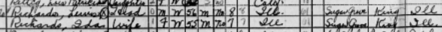 그의 부친은 어떤 가게를 운영하던 루이스였고, 모친은 이다(Ida C. Phillips)였다. 그는 그의 부친의 이름(Louis Peter Richards)을 그대로 물려받았다. 그의 부친은 1885년 3월 1일에 일리노이스, 케인에서 태어났고, 1904년 6월 15일에 동년배 “이다 C. 필립스”와 케인에서 결혼하여 22세에 낳은 둘째 리차드를 포함하여 두 아들과 세 딸들을 낳았다. 그의 가족은 가톨릭 교인이었지만 헌신적이지는 않았다. 1940년 인구 조사에 따르면, 52세의 그의 부모는 캘리포니아, 오렌지 카운티, 애너하임(Anaheim)에서 까페(Cafe)를 운영하며 살고 있었다.