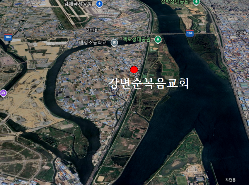당시 그 땅은 ‘맥도’(麥島)라고 불리는 버려진 땅이었다. 땅 모양이 보리처럼 생겼다 하여 맥도(麥島)라고 불렀다고 하나, 이곳에 낙동강 제방을 쌓기 전에는 농업용수가 없고 바닷물이 논밭에 스며들어 벼농사를 조금밖에 못 짓고 보리(麥)를 주곡으로 농사를 지을 수밖에 없는 지역이었기 때문에 붙은 이름이라고도 한다. 또 맥(麥)은 갯벌의 뻘(개흙)을 뜻한다고도 한다. 주변은 온통 갈대밭뿐이었고, 토착민들과 도시에서 상처받은 이들이 주로 거주하고 있었다. 1959년 9월에 태풍 ‘사라’가 휩쓸고 지나가는 바람에 교회의 역사적 자료들이 많이 사라졌다. 순복음맥도교회는 현재 순복음강변교회가 되었다.