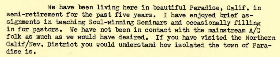 저는 아주 자주 당신을 생각합니다! 참으로 세월이 너무도 빠르게 흘러갑니다. 이제 저는 이미 59세가 되었습니다! 그러나 저는 아직도 부산에서 사역하던 세계선교회(the World Mission)와 당신의 사역 아래서 예배하던 그 복된 시간을 생각하고 있습니다! . . . 그러나 여전히 저의 마음속에서 저는 당신의 소년이며 양입니다. . . . 여전히 예수 안에서 당신의 아들입니다.