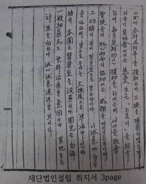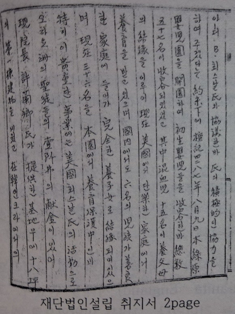 추이 단기 사천이백구십 년 삼월 십일일 허홍목사가 자기로서는 하나님의성회 유지재단에 양도할 수 잇다는 의사 표시에 날인한 바 있다 하나 전일에 협의한 바와 같이 여히 목사는 교회재산권 자격이 없는 바라. 또한 교회에 협의 또는 의사 청취도 없이 개인적 주장의 의사표시에 불과함 우리는 차와 일절 무관함을 확언함.