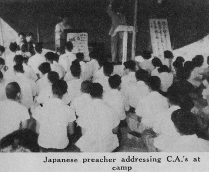 올해 여름 캠프의 주제는 사도행전 1장 8절 “성령이 임하시면, 권능을 받고, 네 증인이 되리라”였다. 우리는 미국 프로그램과 연계된 “원 – 에잇 개인 전도 프로그램”(One-Eight personal evangelism program)을 강조했다. [미국 그리스도의 대사(Christ’s Ambassadors) 전국총회는 1954년 4월 25일에 “원-에잇” 프로그램(One-Eight program)을 시작시켰다. “원-에잇” 프로그램의 성경 본문은 사도행전 1장 8절이었다. 그리고 그 프로그램은 그리스도의 대사 회원 한 명이 일주일에 여덟 부의 소책자를 배포하는 활동을 기본으로 삼았다.] 일본어로 된 적합한 소책자들의 부족 때문에, 우리는 일주일에 여덟 부의 소책자를 배포하는 것을 많이 강조하지 못했다. 하지만, 우리는 그리스도의 대사들 개개인이 일주일에 여덟 명의 사람들에게 개인적으로 증거한다면, 교회들은 전국적으로 폭발적인 성장을 하게 될 것이라는 것을 강조했다.