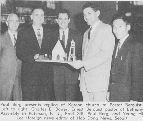 랄프 버드 부부(Brother and Sister Ralph Byrd)와 선교사 존 허스톤(John Hurston)과 함께 지난 [1958년] 여름 여섯 개 도시에서 열었던 집회들의 서울 집회의 마지막 주간에 정기 총회가 열렸다. 그 총회는 목회자들의 회합과 행정처리가 결합된 것이었다. 매일 아침 버드와 허스톤 형제는 성령의 기름 부으심 아래서 집회를 이끌었다. 이것은 기독교대한 하나님의 성회 목회자들에게 우리의 오순절적 교리에 대한 가르침에 기반을 둔 회합을 가진 첫 사례였다.